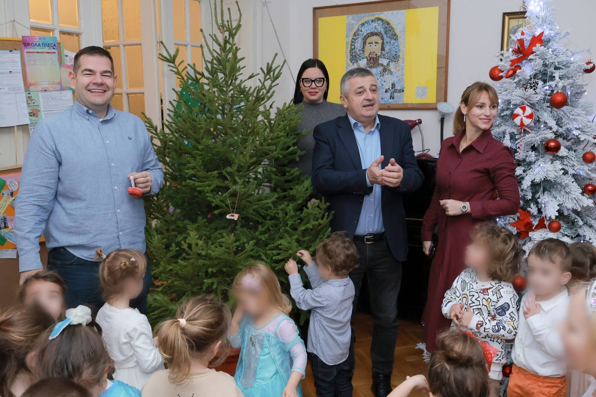 Тим поводом, у петак 26. децембра, Предшколску установу „Нада Пурић“ посетили су заменик председника Општине Врачар Драги Лукић и помоћник председника Коста Маловић, као и директорка Предшколске установе „Врачар“ Јелена Јеленић Јанковић. Они су поклон јелком обрадовали насмејане и радосне малишане, који су нестрпљиво чекали да ставе први украс на јелку.