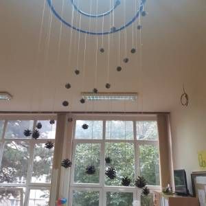 У оквиру сензо-моторне целине деца ређају природне материјале по линијама.