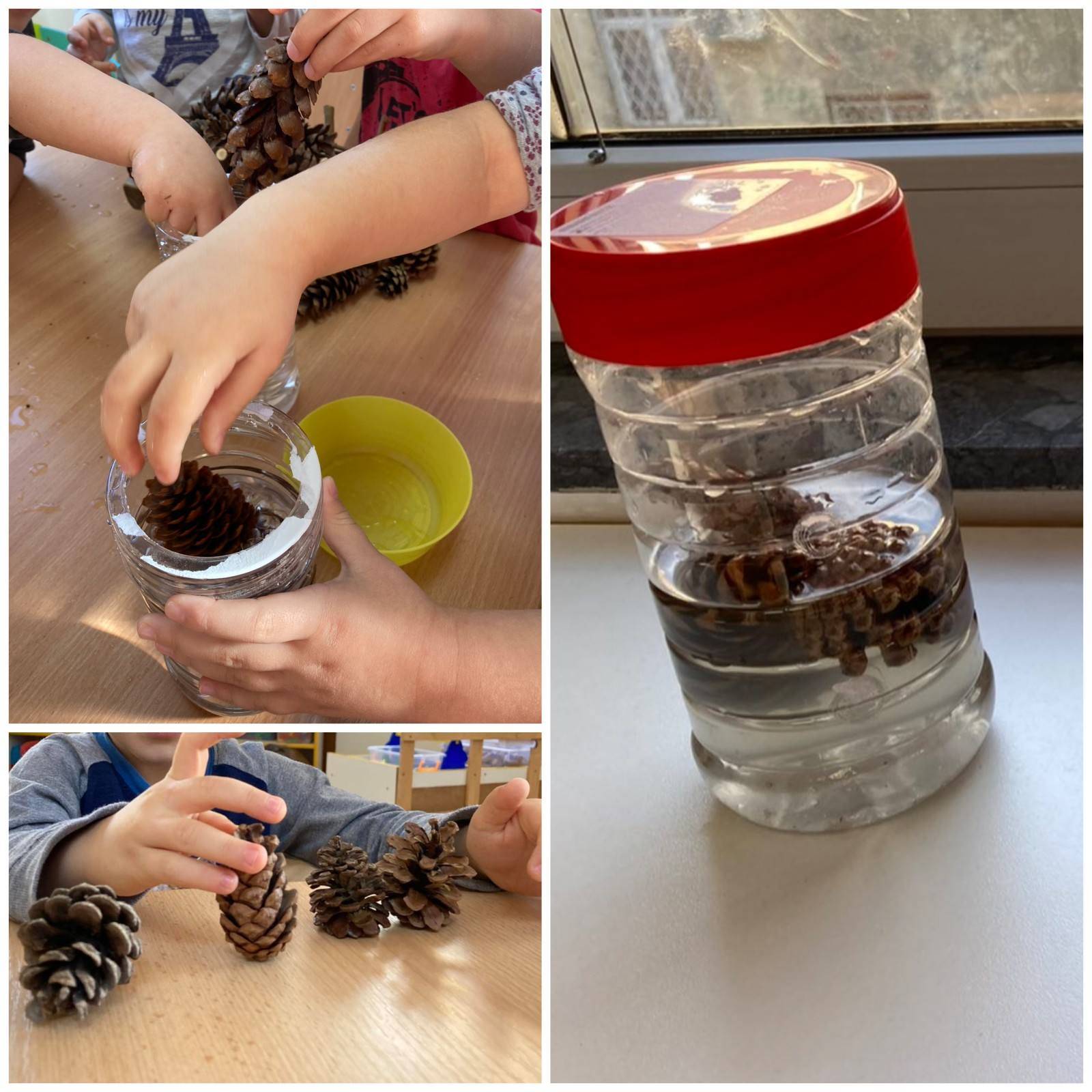 Деца стичу и проширују своја знања путем интеракције са различитим материјалима, нарочито природним. У млађој групи дечје интересовање посебно је привукла шишарка.