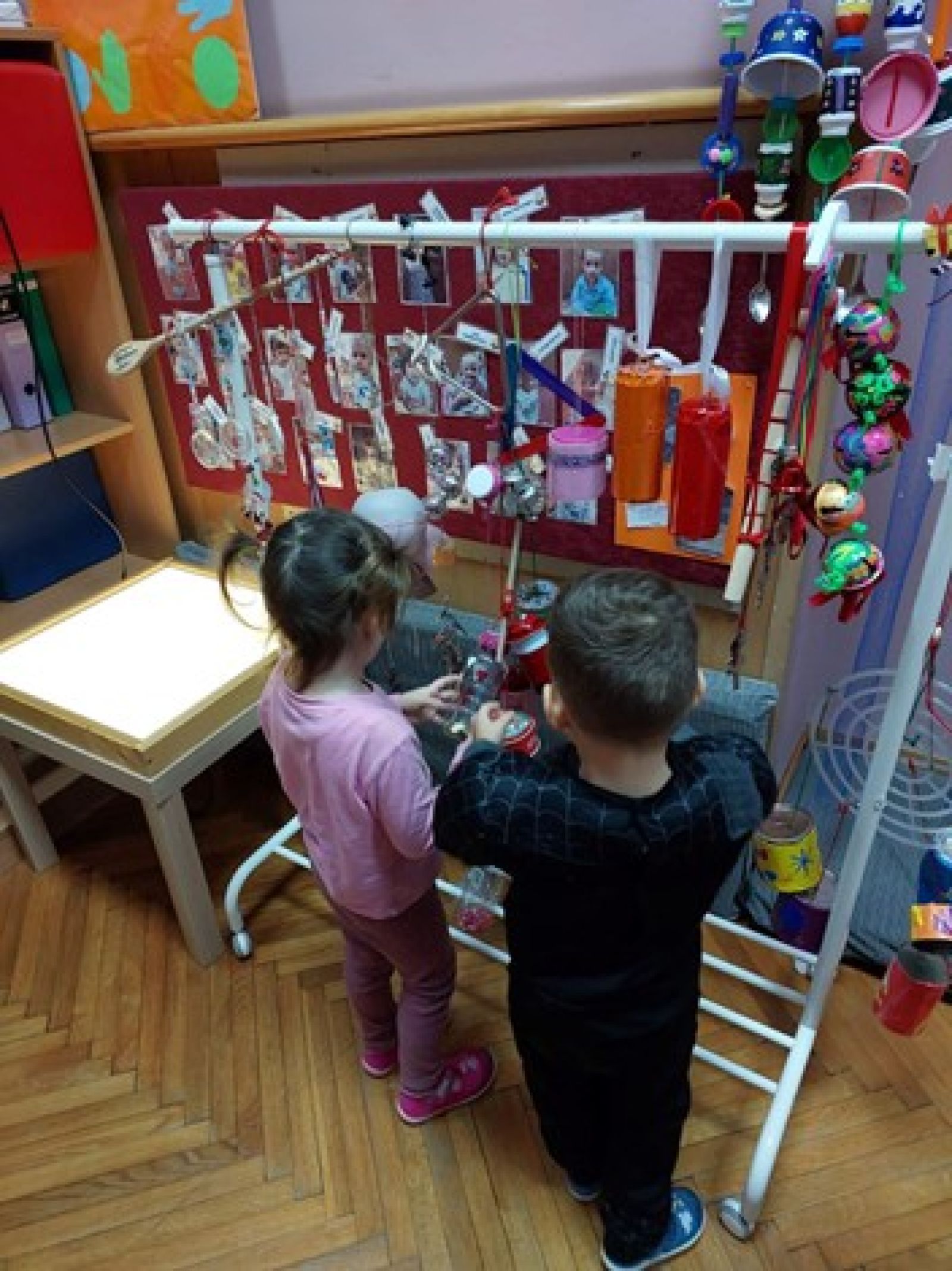 Родитељи млађе групе су помогли у изради „Звучне завесе“, у оквиру пројекта „Пусти музику“.