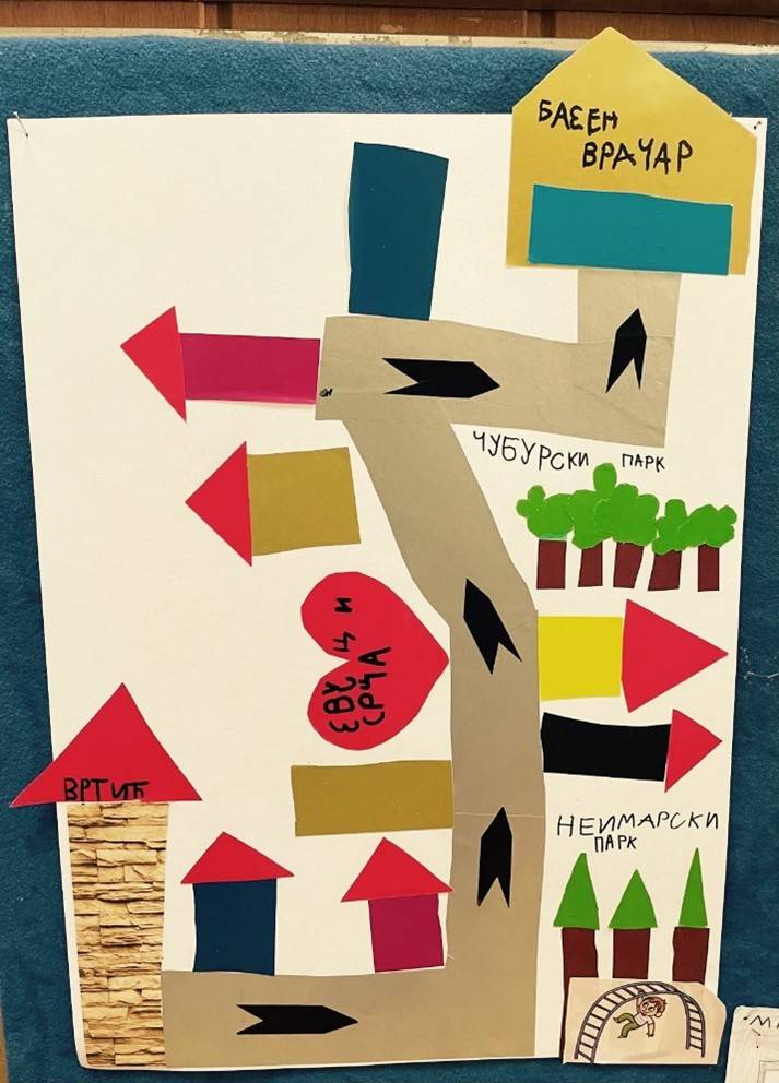 У оквиру пројекта „Пут за све“ произишли су продукти у виду мапа које су деца желела да оставе за другаре који долазе у вртић. Тако смо добили мапу пута до базена, школе, паркића итд.
