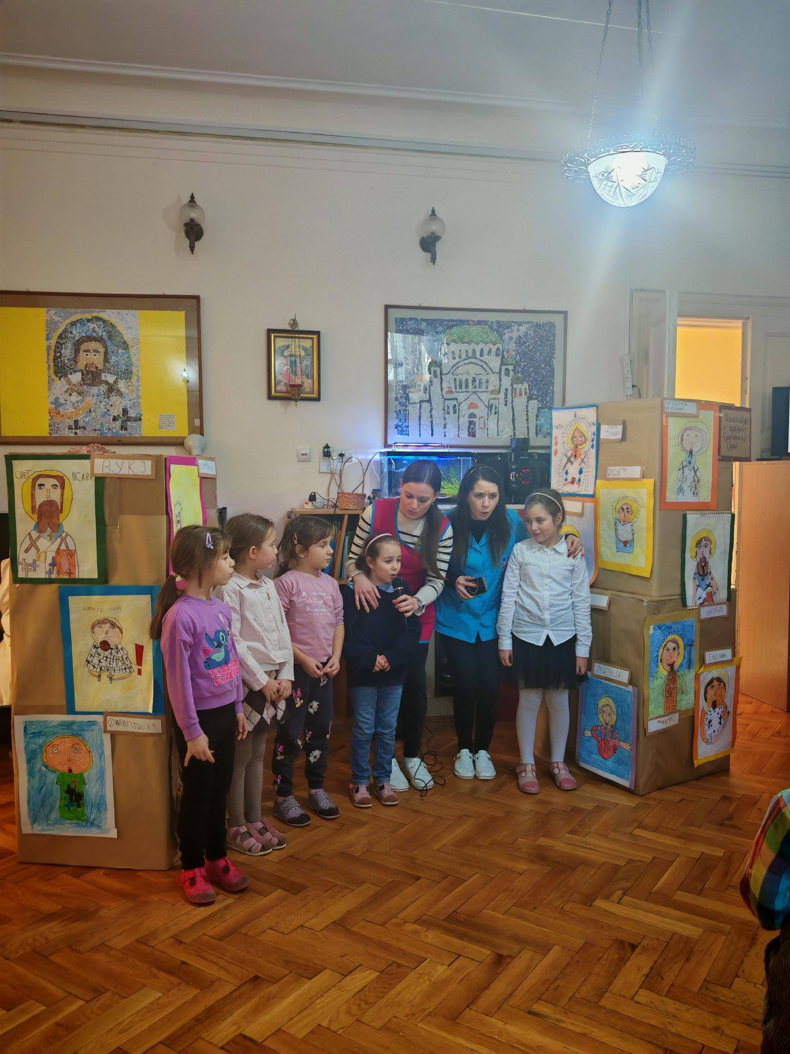 Деца су се свечано обукла тог дана и отворила приредбу певањем химне Светом Сави уз пратњу клавира колегинице Зоране Чворовић. Васпитачи и деца су били подршка и уживали су за време излагања старијих другара.